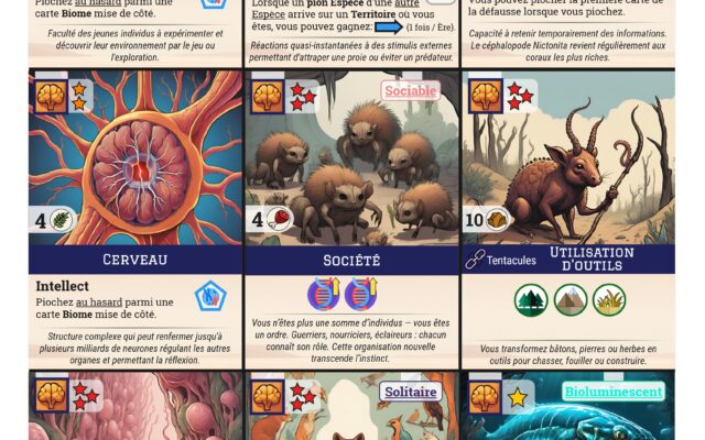 Un jeu immersif avec une quasi-infinité de possibilité et un jeu interactif, ou les joueur.euse.s doivent s’adapter en permanence pour devenir une espèce florissante. Chaque partie est une expérience nouvelle dans laquelle vous racontez l’histoire de votre espèce et ou chaque joueur.euse peut créer une espèce unique.